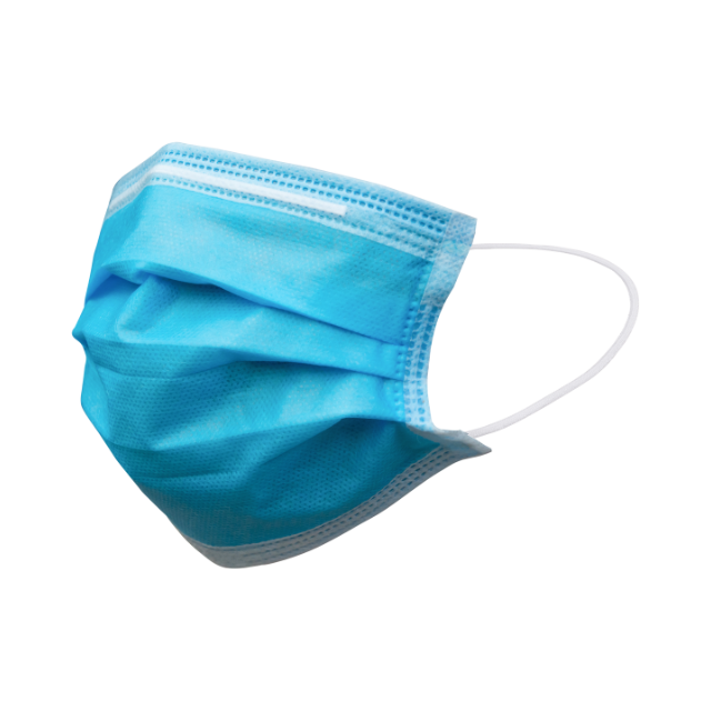 Nagy hatékonyságú II típusú háromrétegű gumis, nem szőtt textil anyagból készült maszk, kék színben.