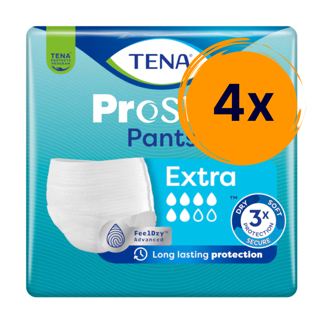A TENA Pants Extra olyan, inkontinencia esetére készült pelenkanadrág, amely akár 100%-os védelmet biztosít közepes és súlyos vizeletszivárgás esetén, 2-szer gyorsabban szívja be a folyadékot*, és nappal, illetve éjszakára is hosszan tartó száraz érzést biztosít. Megbízható minőségű eldobható nadrágpelenka aktív életet élőknek, napi használatra, nemtől függetlenül.