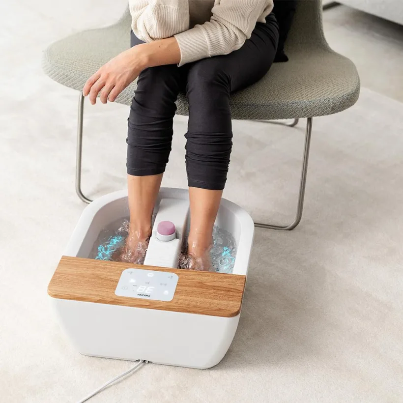 A lábápolás csúcsa: prémium minőségű, digitálisan vezérelt láb-pezsgőfürdő, amely egyesíti a vízfűtést, a mágneses terápiát, az infravörös fényt és az aromaterápiát. Nyolcfokozatú vízhőmérséklet-szabályzása (35–48 °C) és három automatikus programja lehetővé teszi, hogy minden használat egy igazi wellness élmény legyen. A 16 beépített mágnes, az aromaszűrő és a cserélhető pedikűr feltétek tökéletes kombinációt alkotnak a relaxációhoz és a lábak ápolásához.