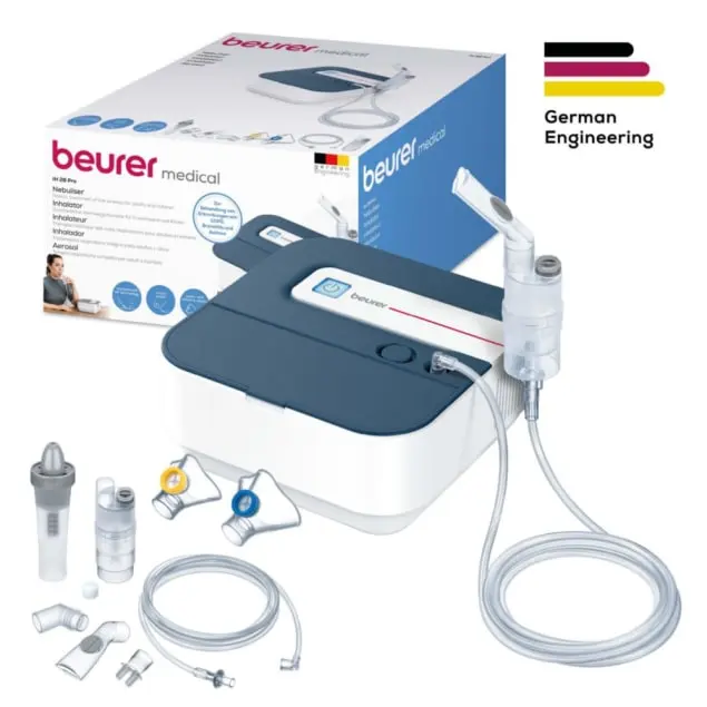 A Beurer IH 28 Pro Inhalátor kompresszoros, sűrített levegős technológiával működik, amely finom permetet hoz létre és lehetővé teszi a gyógyszeroldatok célzott juttatását a légutakba. Kifejezetten alkalmas mind felső, mind alsó légúti megbetegedések kiegészítő kezelésére. A készülékhez tartozik orrzuhany, amely segít az orrjáratok átmosásában, továbbá tartalmaz gyerek- és felnőtt maszkokat, tárolótartót és egyéb kiegészítőket a kényelmes használathoz.