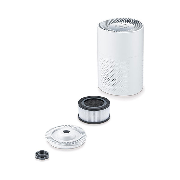 A Beurer LR 220 légtisztító hatékonyan tisztítja a beltéri levegőt por, pollen, szagok és egyéb szennyeződések eltávolításával. A készülék előszűrőből, HEPA H13 és aktívszén-szűrőből álló rendszerrel dolgozik, így a levegőben lévő részecskék akár 99,95 %-át is kiszűri. Kompakt kialakításának és csendes működésének köszönhetően hálószobába, nappaliba vagy dolgozószobába is ideális.