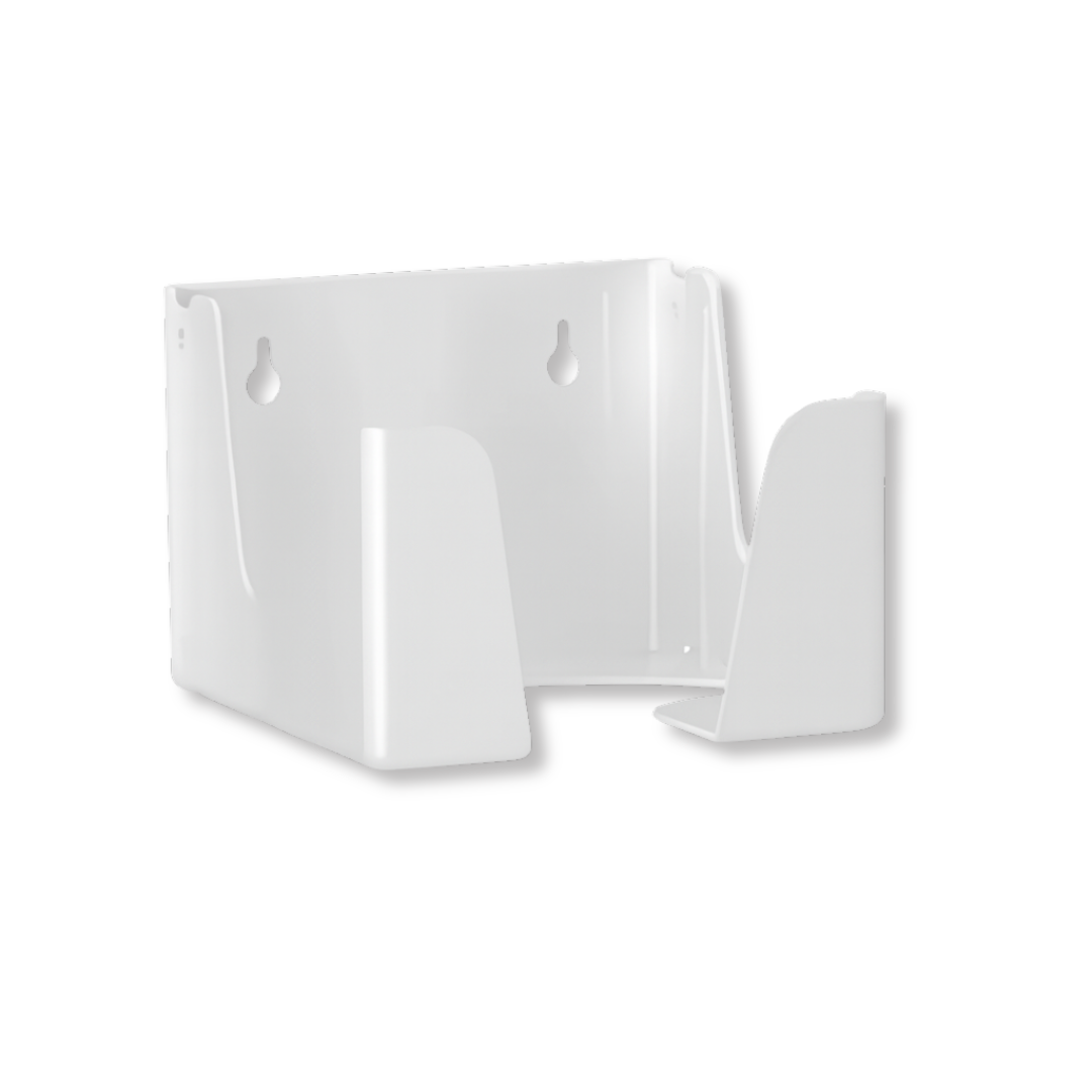 Ideális megoldás a tiszta és gyors tárolásra – fehér, falra szerelhető tartó, praktikus és higiénikus.