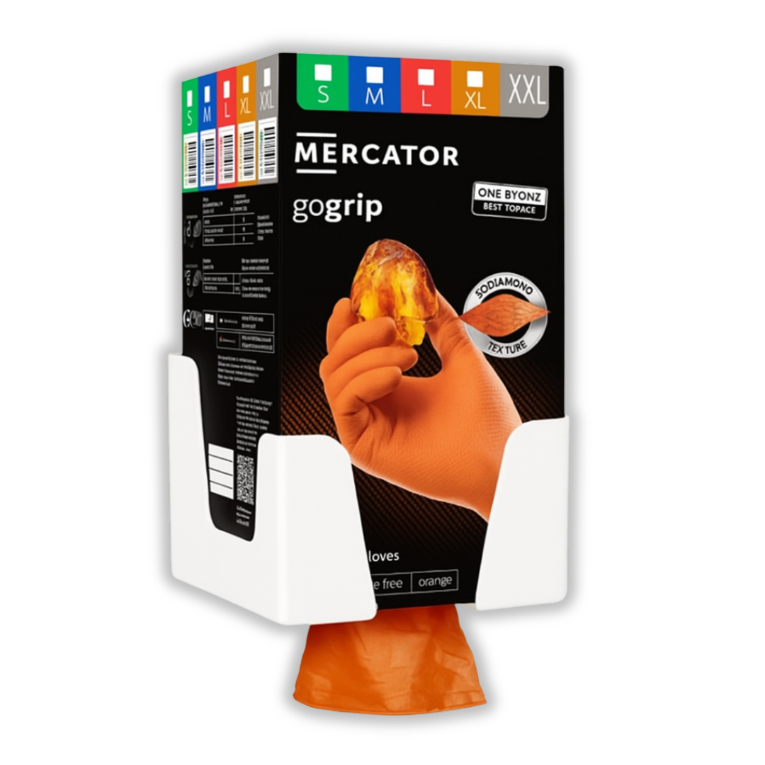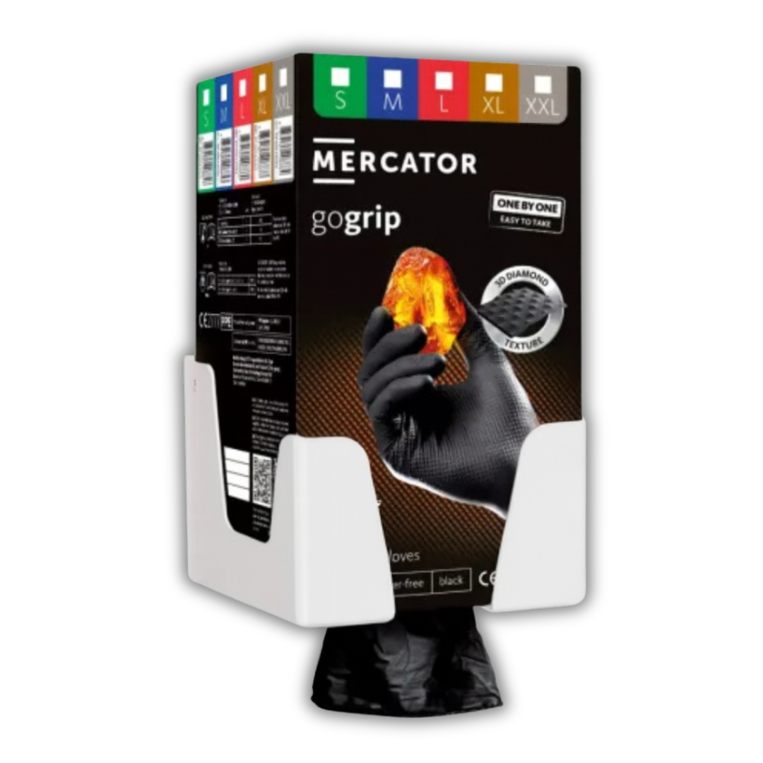 Kizárólag azokkal a Mercator GoGrip kesztyűkkel kompatibilis, melyek One‑by‑One rendszerben vannak csomagolva. A tartó elengedhetetlen támogatás a professzionális higiéniai szokások kialakításában.